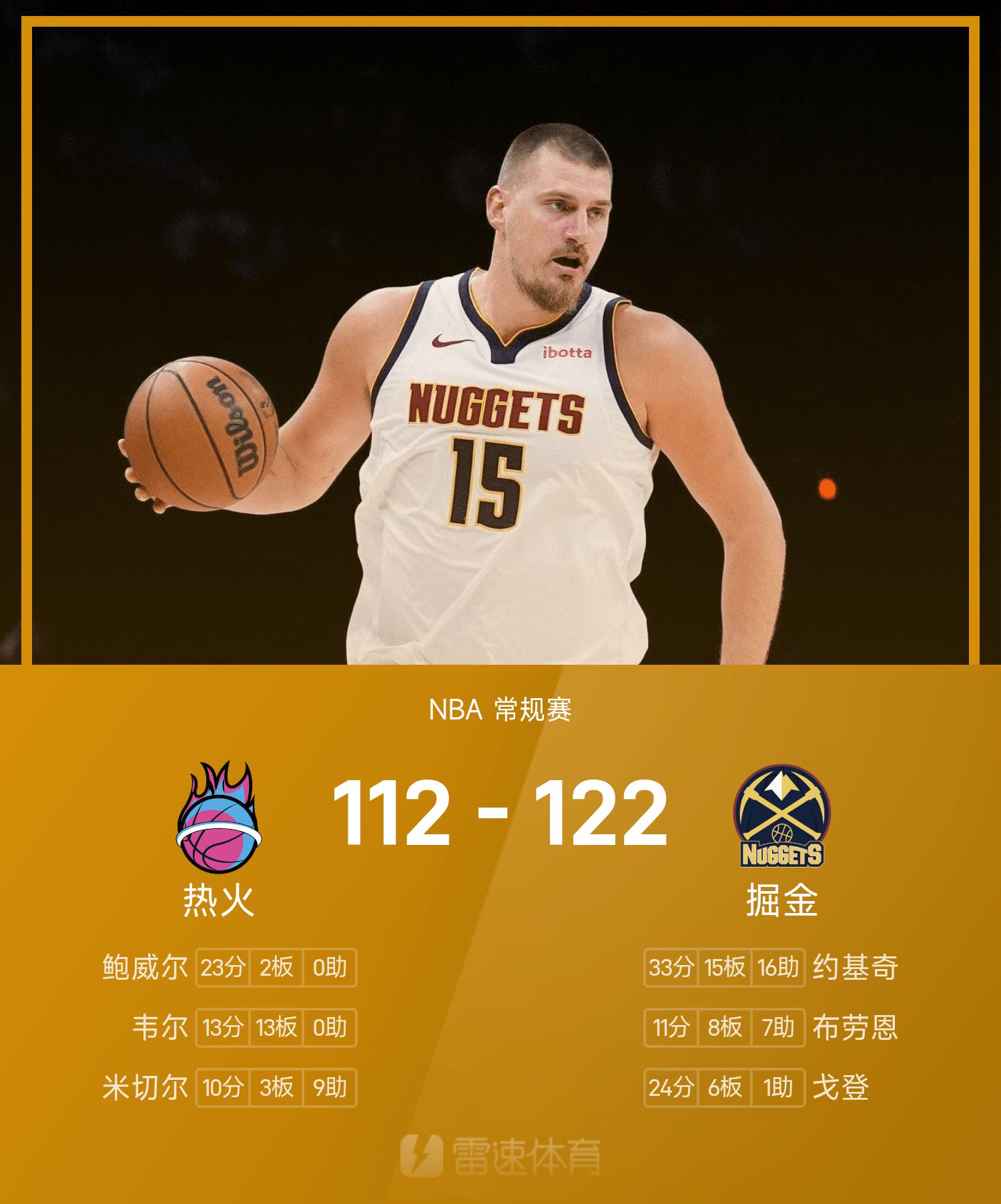 Jokic ghi được 33 điểm, 15 rebound và 16 kiến tạo khi sút 12/18, giành được triple-double thứ năm trong mùa giải này.