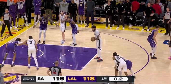 Cuối trận, Lakers suýt đánh bại Spurs với tỷ số 118-116.
