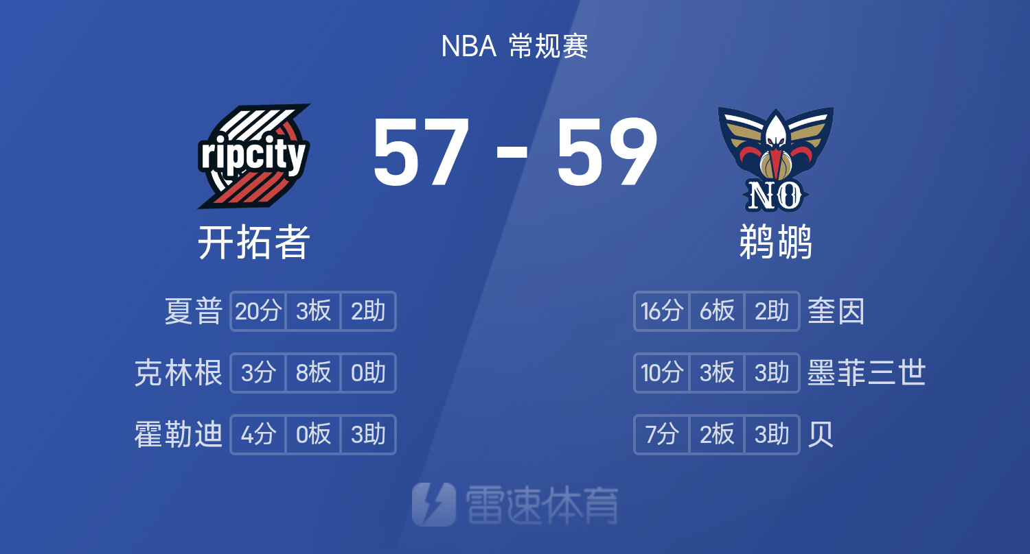 Hiệp một NBA: Quinn 16+6, Yang Hansen chưa xuất hiện, Trail Blazers 57-59 Pelicans