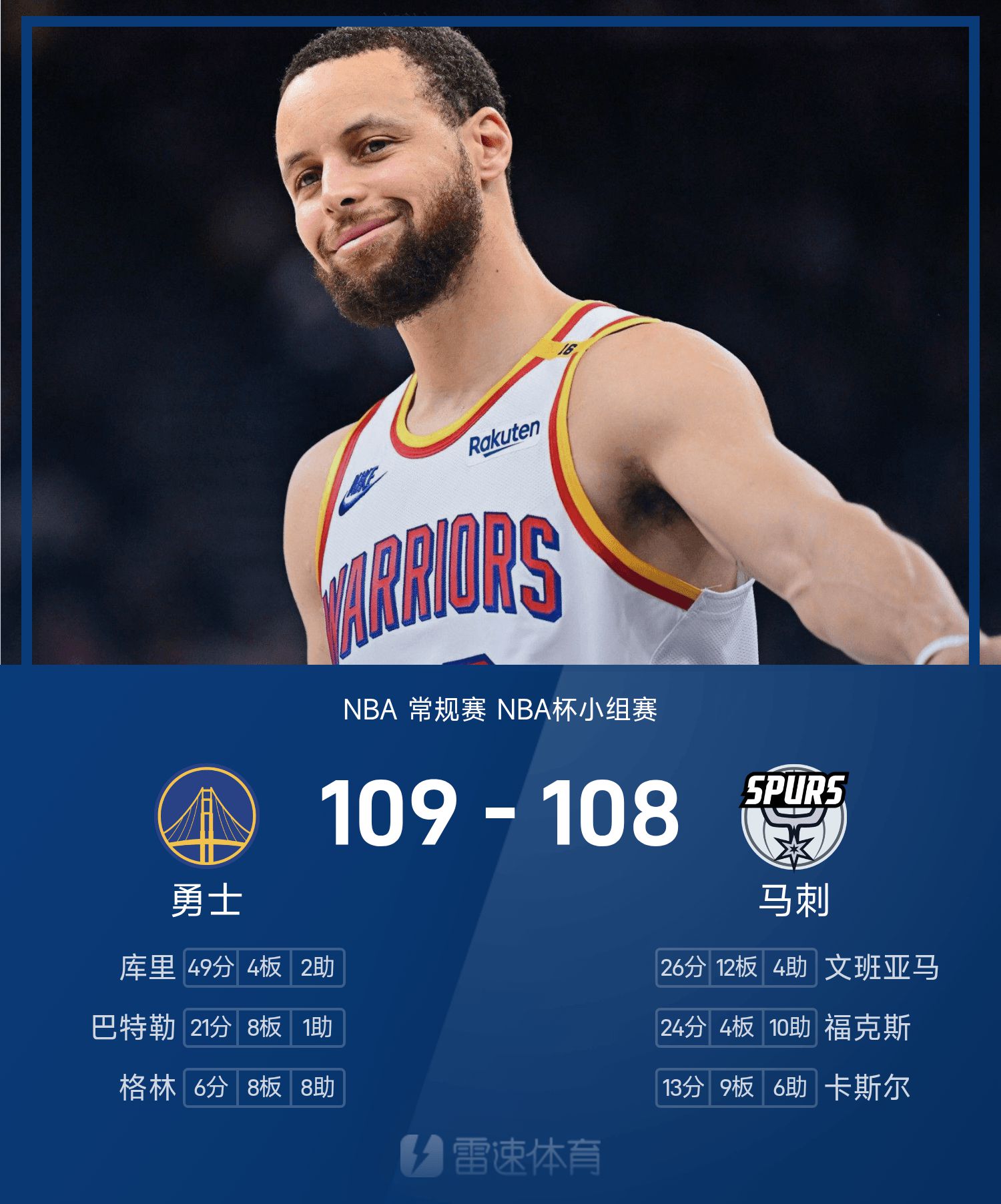 Báo cáo NBA Cup: Curry ghi 49 điểm cao nhất mùa giải, Warriors suýt đánh bại Spurs 109-108