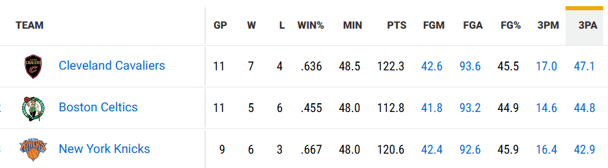Hệ thống mới! Knicks đứng thứ ba giải đấu về số lần ghi ba điểm trong mùa giải này và đứng thứ tư so với mùa giải trước.