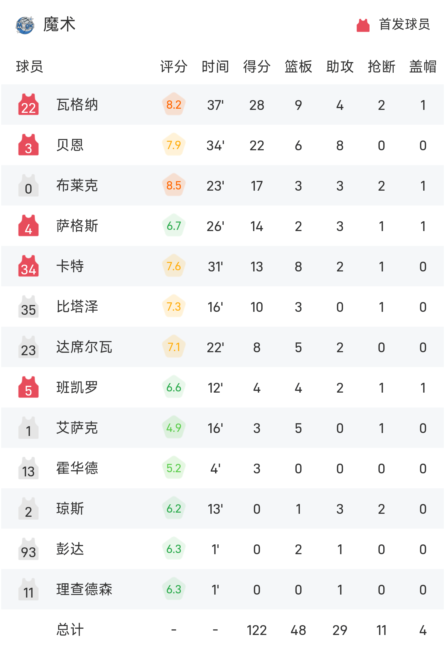 Wagner ghi 28 điểm, 9 rebound và 4 kiến tạo để dẫn dắt đội giành chiến thắng, trong khi Brunson ghi được 31 điểm, 3 rebound và 6 kiến tạo, cao nhất trận.