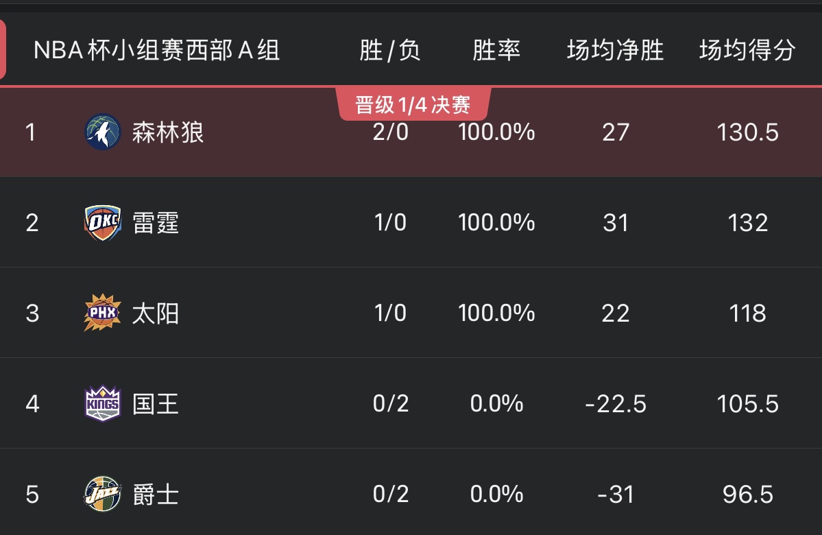 Tại bảng A Western Conference, Timberwolves có thành tích mạnh mẽ với 2 trận thắng và 0 trận thua, với chỉ số ròng là +54. Họ hiện đang ở trong tình thế thuận lợi để vượt qua vòng loại, và hai trận đấu tiếp theo của họ với Suns và Thunder sẽ quyết định suất dự vòng loại trong nhóm này.