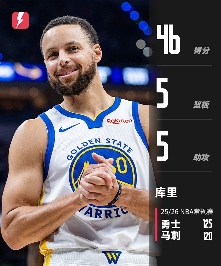 Ngôi sao của Warriors Curry đã chơi 33 phút 21 giây trong trận đấu này, thực hiện 13 trong số 25 cú sút, trong đó có 5 trong số 16 quả ba điểm, 13 trong số 14 quả ném phạt và ghi được 46 điểm, 5 rebound, 5 hỗ trợ và 2 lần đánh chặn.