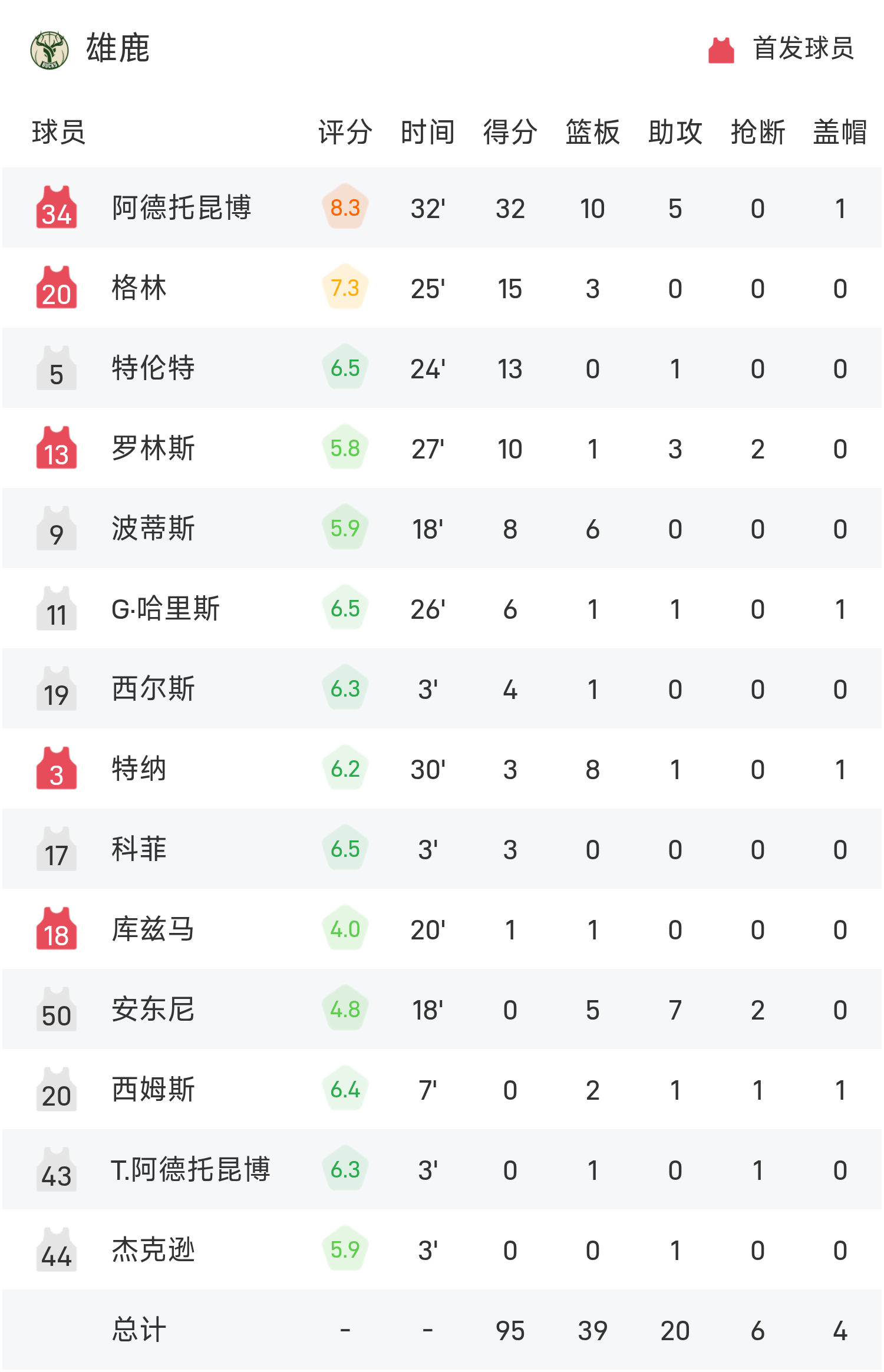 Cuối trận, Bucks thua Lakers với tỷ số 95-119.