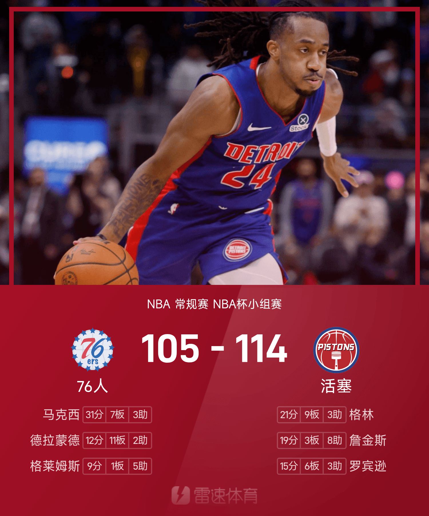 76ers 105-114 Pistons