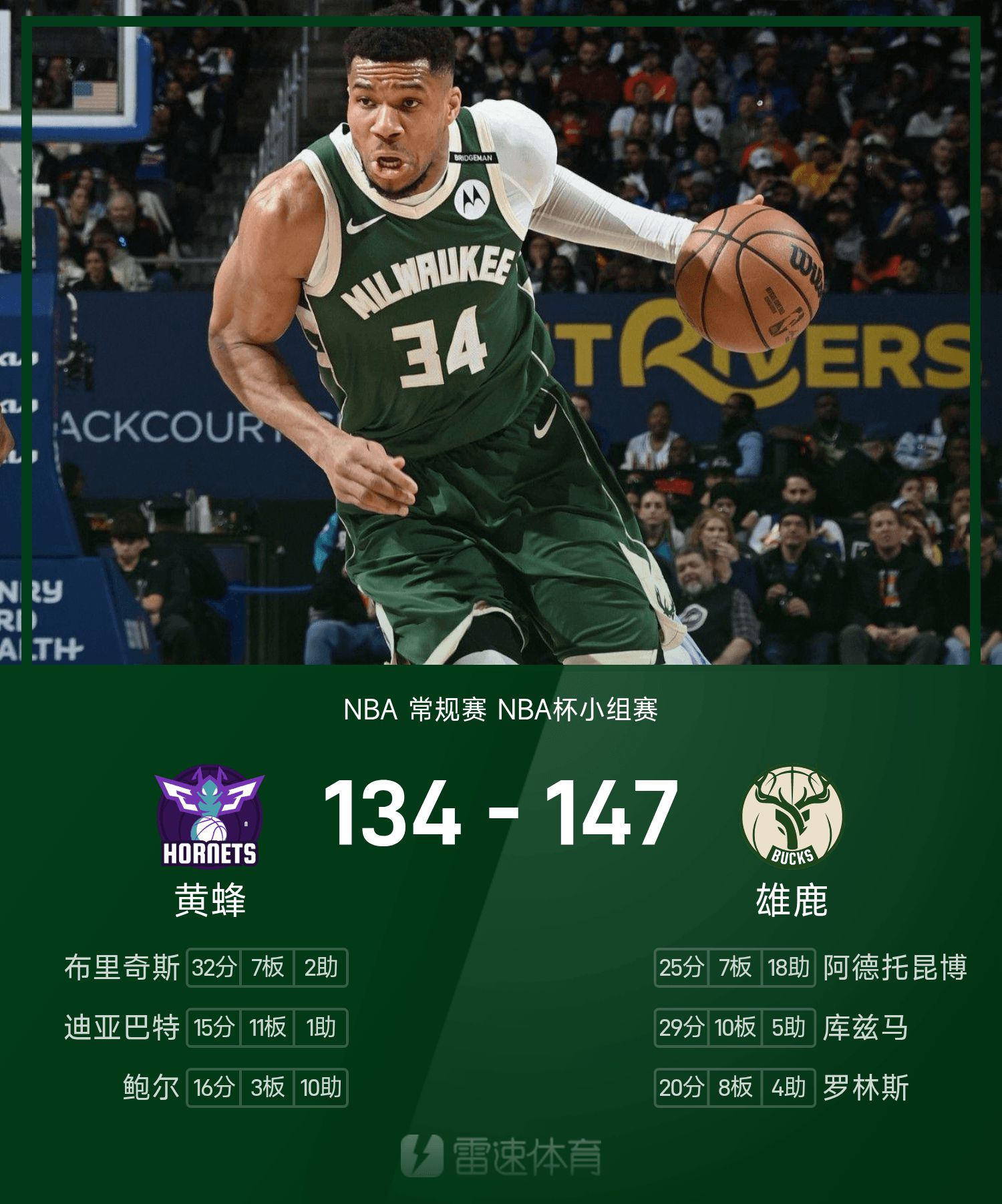 Hornets 134-147 Bucks