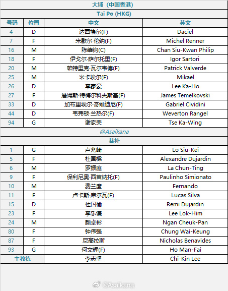 20h15 tối 6/11 theo giờ Bắc Kinh, ở lượt 4 vòng bảng hạng hai AFC Champions League, đội chủ nhà Beijing Guoan một lần nữa đối đầu với đội Hong Kong Super League Tai Po. Đội hình xuất phát đã được công bố trước trận đấu.