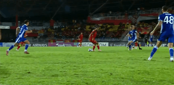 47' Jung xoay người rê bóng trong khu vực ba giây và sút, còn thủ môn đã cứu được bóng