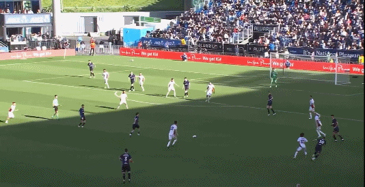 26’ Thủ môn của Oakland đã kịp thời cản phá và cứu đồng đội bằng một tay cứu thua đối phương