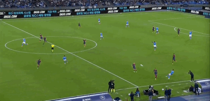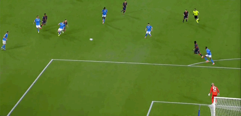 Biển cảnh báo 45+6' - Vi phạm Gilmour (Naples)