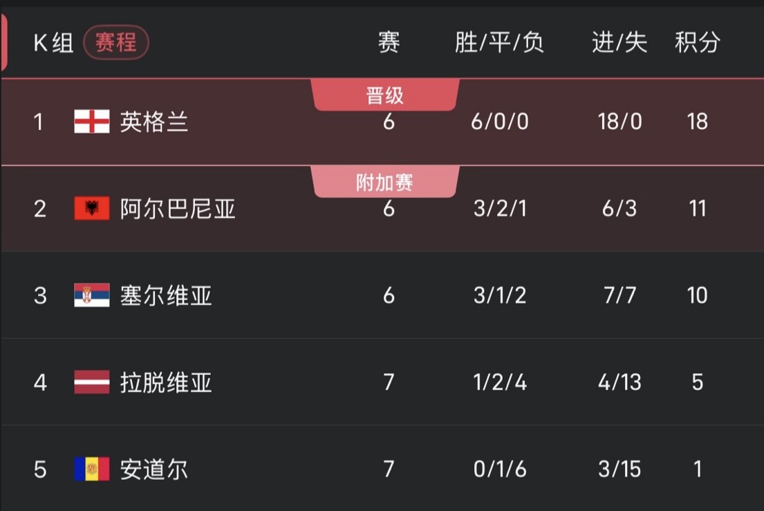 Anh đã giành được vị trí đầu bảng từ trước. Albania và Serbia sẽ tranh ngôi nhì bảng.