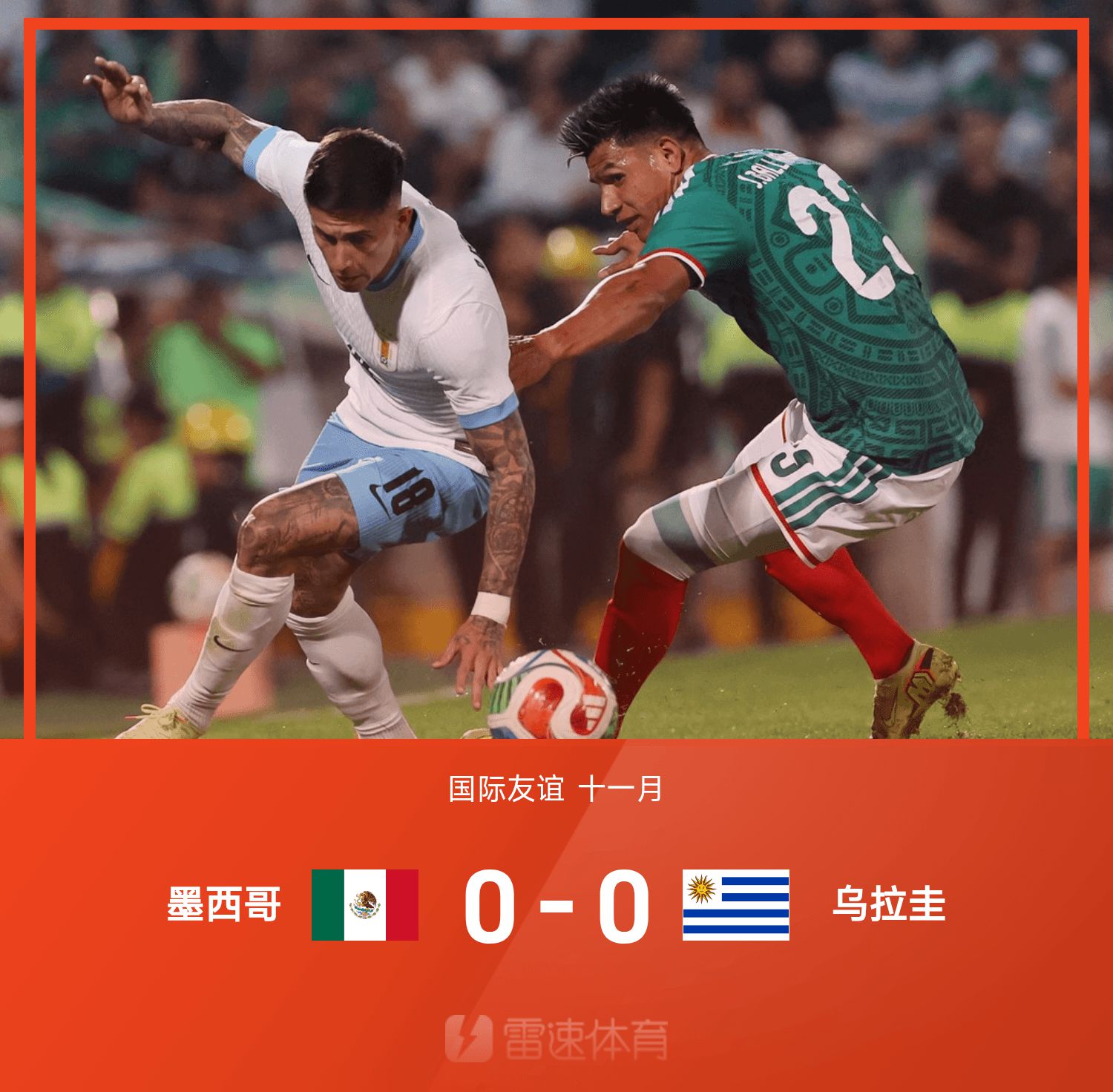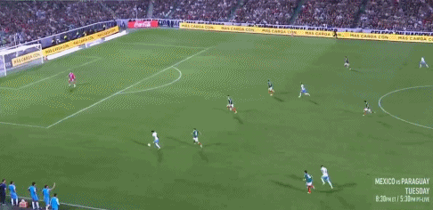 71' Cú vô lê của Jimenez từ đầu khu vực ba giây bị trượt nhưng trọng tài đã thổi còi vì hậu vệ người Uruguay phạm lỗi