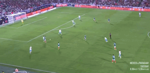 24’ Jimenez đánh đầu từ phía sau, Lozano bỏ lỡ cơ hội ghi bàn trống với cú sút nửa chừng chậm