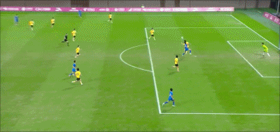 19' Zhong Wen quay người rê bóng trong khu vực ba giây rồi vô lê, bóng đi chệch mục tiêu