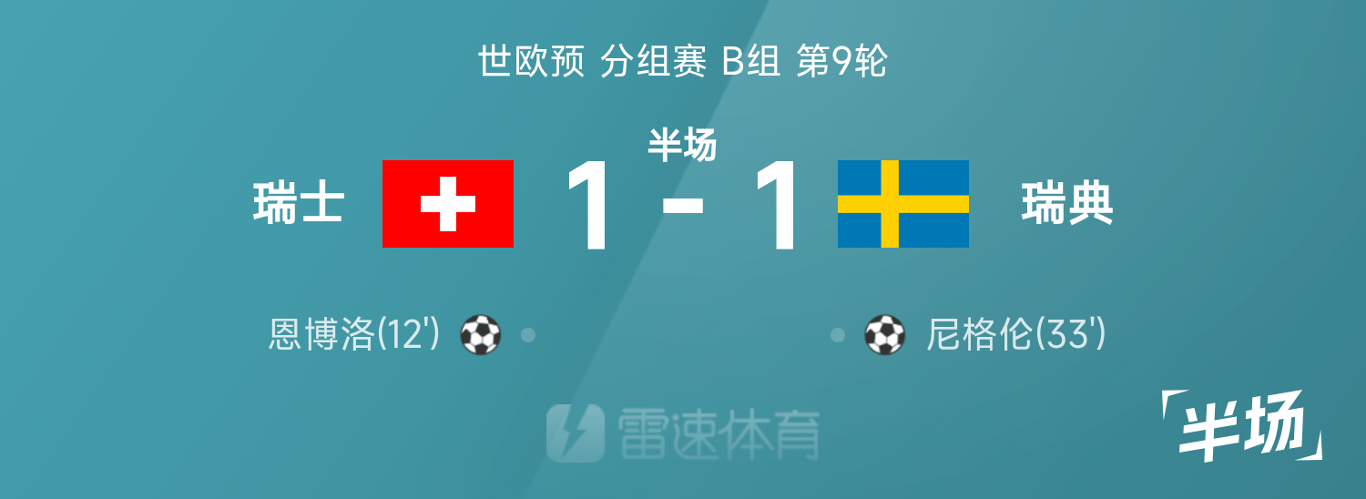 Hiệp một vòng loại châu Âu thế giới: Embolo ghi bàn, Nygren gỡ hòa, Thụy Sĩ tạm hòa 1-1 Thụy Điển