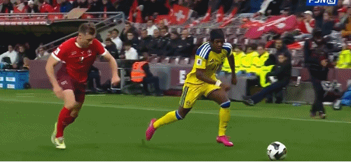 31'Thụy Sĩ đe dọa chuyền bóng trong vòng cấm nhưng cú đánh đầu của Widmer lại đi chệch mục tiêu