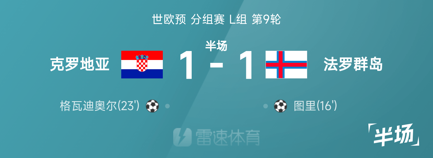 Hiệp một vòng loại châu Âu thế giới: Turi ghi bàn, Gvadiol gỡ hòa, Croatia 1-1 Quần đảo Faroe