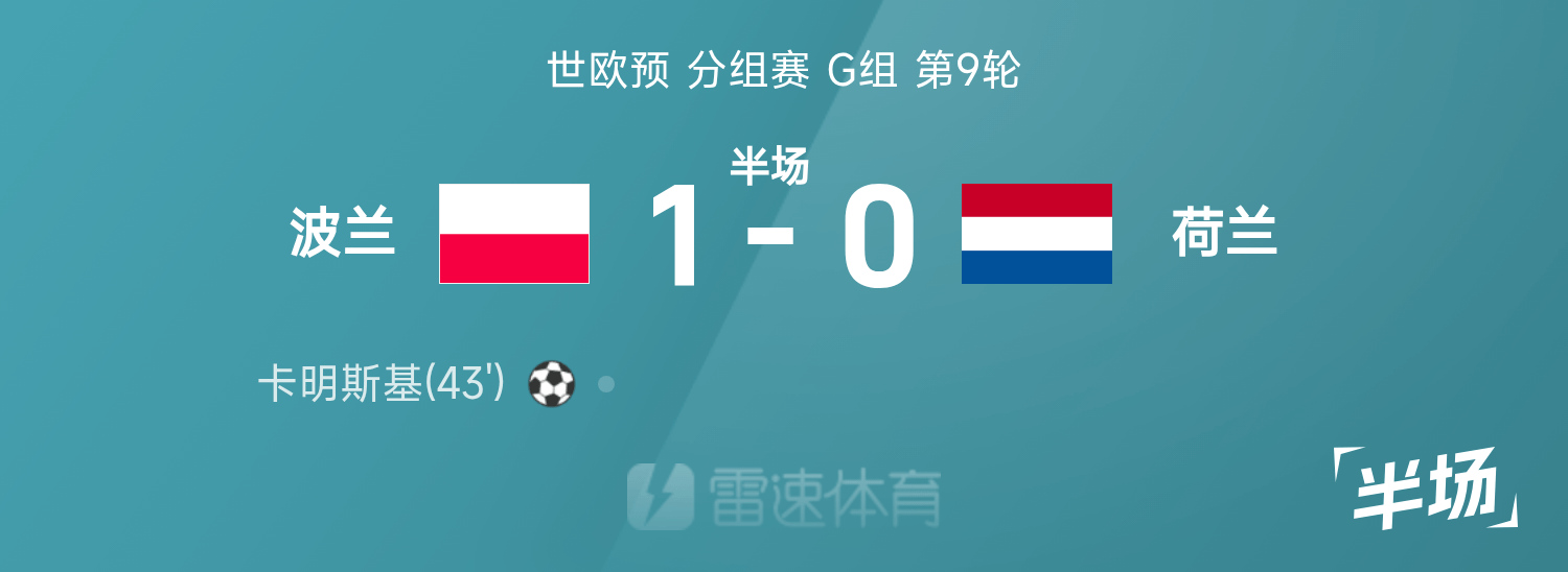 Hiệp 1 vòng loại châu Âu thế giới: Kaminski sút phạt góc xa ghi bàn, Ba Lan tạm dẫn Hà Lan 1-0
