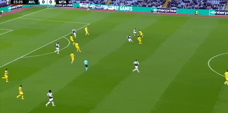 Đội hình xuất phát của Aston Villa: 23-Martinez, 3-Lindelof, 4-Konsa, 14-Torres, 22-Mattson, 19-Sancho, 24-Onana, 29-Gaisan, 27-Rogers, 2 6-Bogard, 17-Mullen
