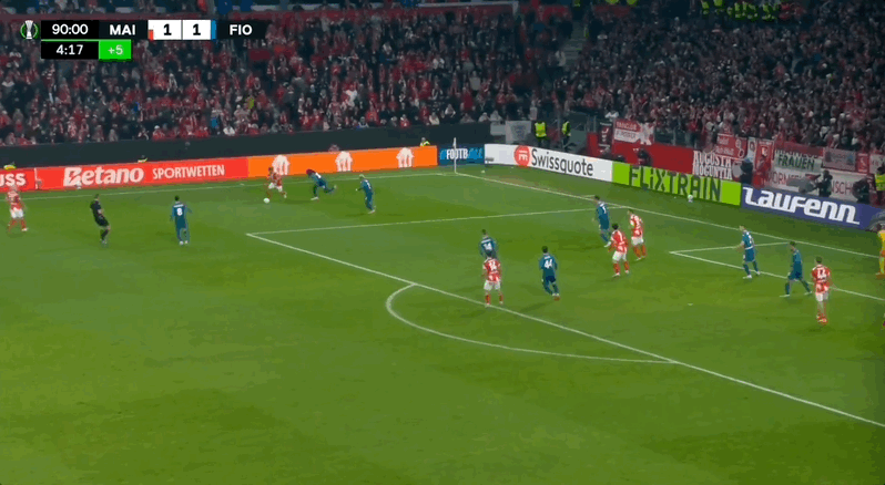 23' Piccoli đã có một pha phạm lỗi cơ hội tuyệt vời ở khu vực ba giây, nhưng cú sút đã bị thủ môn Mainz cản phá