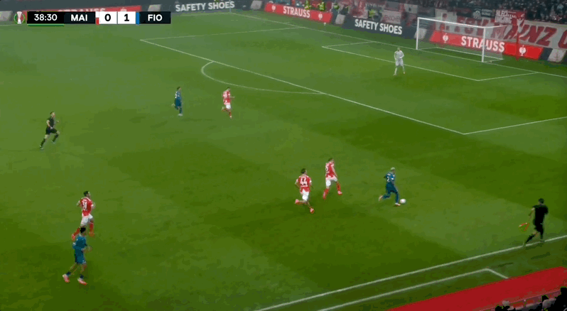 10' Vipier đánh đầu dẫn bóng trong khu vực ba giây, và thủ môn Fiorentina đã tịch thu bóng