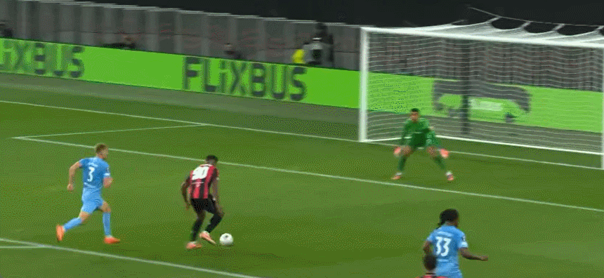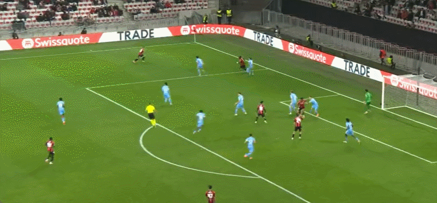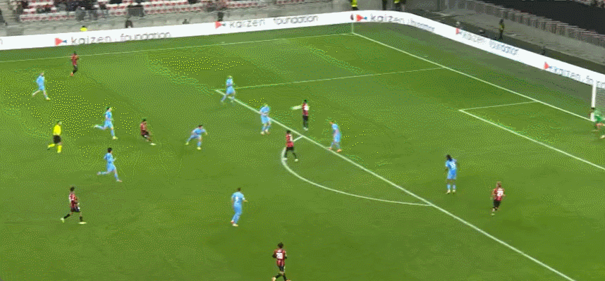 63' Nice bao vây đối thủ, Govia lốp bóng vọt xà ngang, và Samed tiếp theo bằng cú sút cao hơn xà ngang một chút