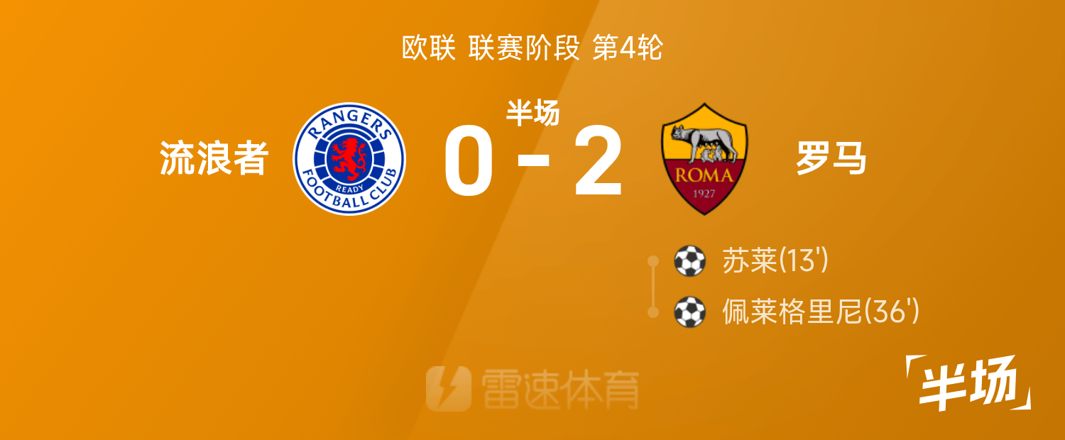 Hiệp 1 Europa League: Sule và Pellegrini ghi bàn, Rangers 0-2 Roma