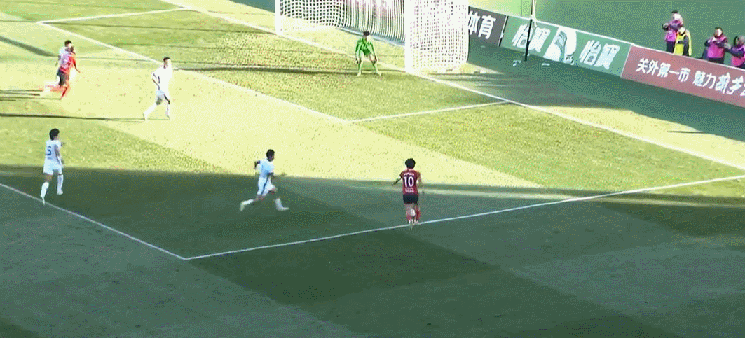 31' Zang Yifeng đột phá vào khu vực ba giây để nhận đường chuyền ngang của đồng đội và đẩy bóng đi cao hơn khung thành một chút. xà ngang