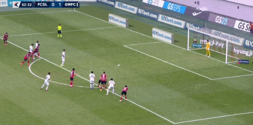 5’ Seoul quả đá phạt đi vào khu vực ba giây và Li Shengmo đã quá muộn để vượt qua khung thành