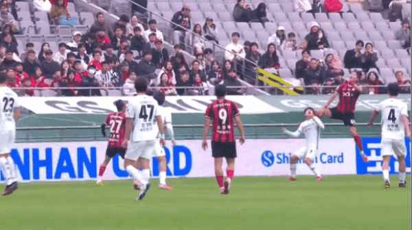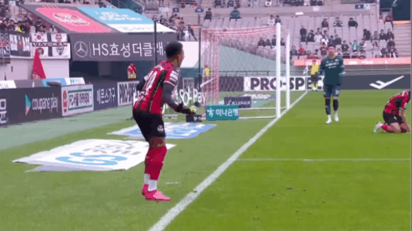 39' Kim Jin-soo thực hiện cú sút từ ngoài khu vực ba giây, và thủ môn đã cố gắng cứu bóng từ vạch cuối sân