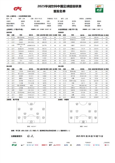 Đội hình xuất phát của Dalian Yingbo: 26-Huang Zihao, 2-Mamadu (F), 30-Wen Jiabao, 36-Bi Jinhao, 4-Alimi (F), 21-Lu Peng, 22-Mao Weijie, 25-Daniel Peña (F), 38-Lu Zhuoyi, 15-Liu Zhurun, 16-Zhu Pengyu