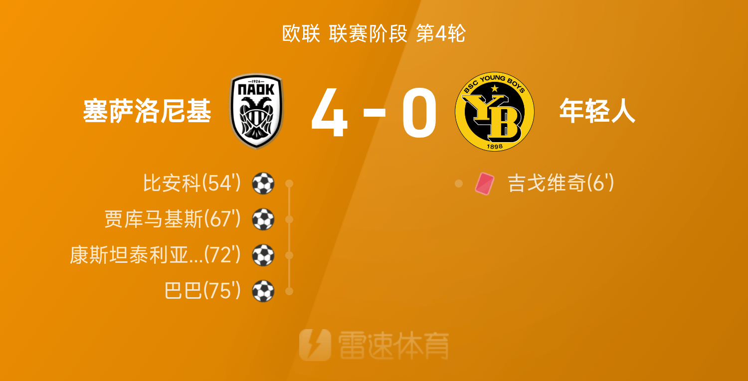 6686 Thể thao ngày 07 tháng 11 Ở vòng 4 Europa League 25/26, Thessaloniki đã đánh bại Young Boys với tỷ số 4-0. Cả trận, Baba chơi xuất sắc, đóng góp 1 cú sút và 1 đường chuyền. Constantillas, Jakumakis và Bianco ghi bàn còn Djigovic ghi bàn đỏ.