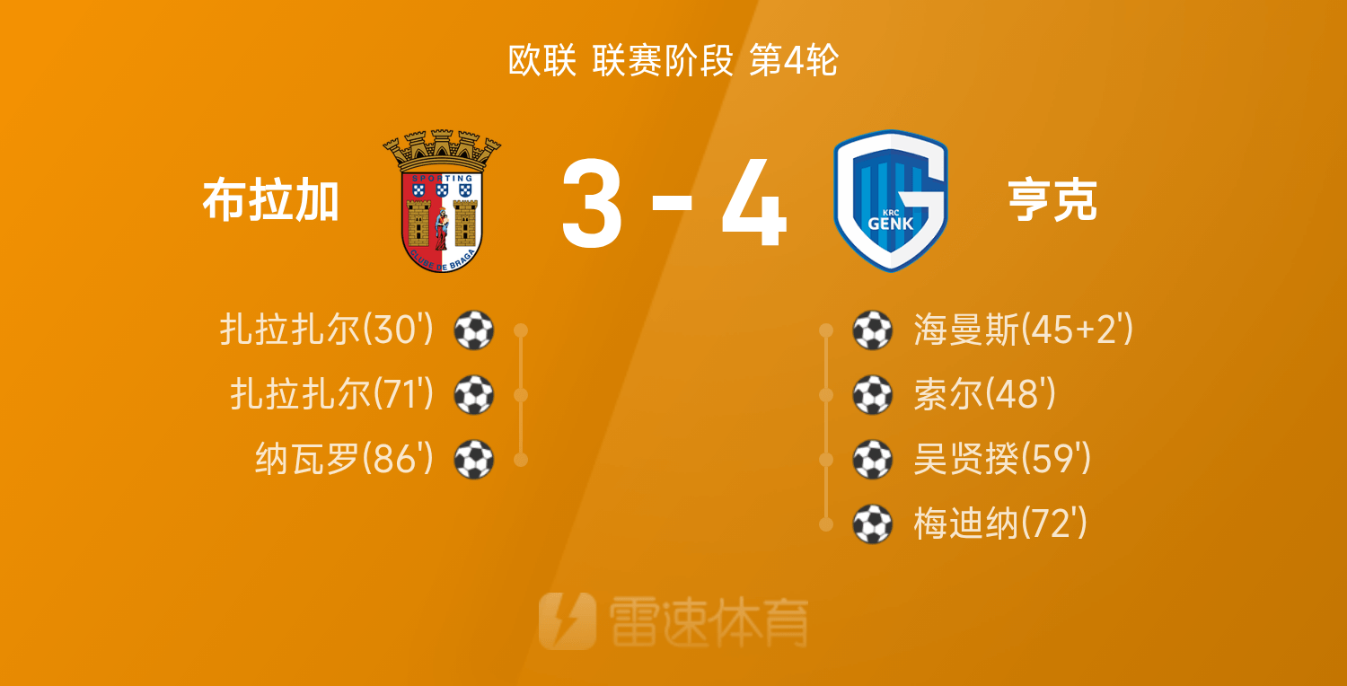 6686 Thể thao ngày 07 tháng 11 Ở vòng 4 Europa League 25/26, Genk đã đánh bại Braga 4-3. Cả trận, Heymans chơi xuất sắc, đóng góp 1 cú sút và 1 đường chuyền. Wu Xiankui, Sol và Medina đã ghi bàn và đóng góp. Zalazar không cứu được trận đấu với hai cú đánh.