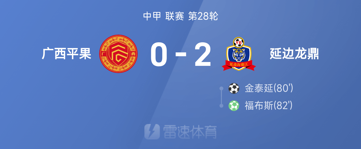 6686 Thể thao ngày 26 tháng 10 Ở vòng 28 giải Chinese League One lần thứ 25, Yanbian Longding đã đánh bại Guangdong Pingguo với tỷ số 2-0. Trong suốt trận đấu, Forbes và Kim Tae-yeon đã ghi bàn.