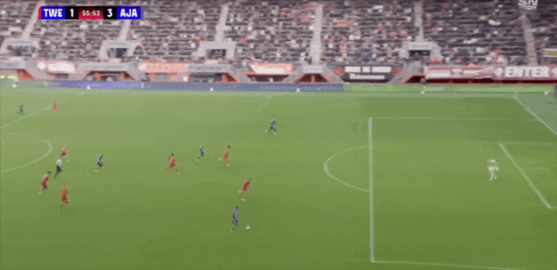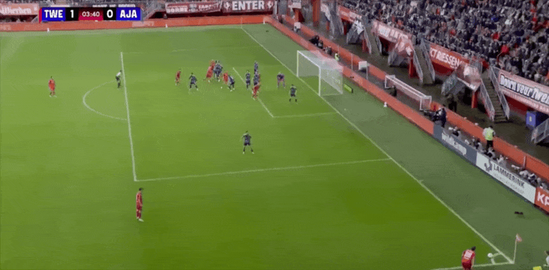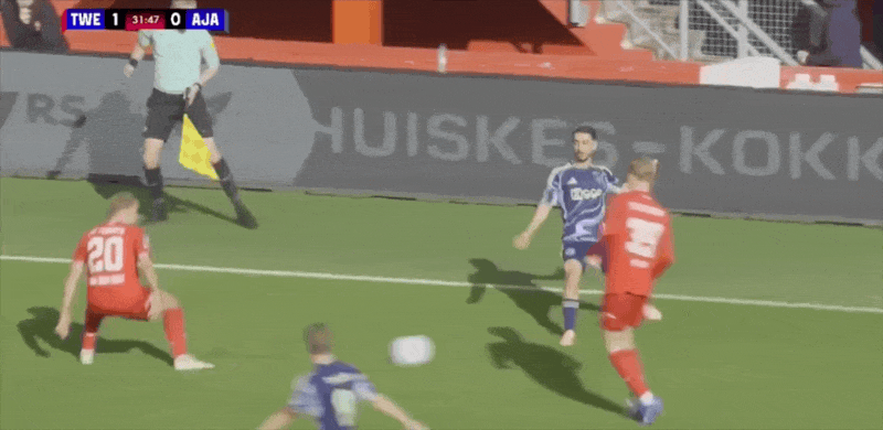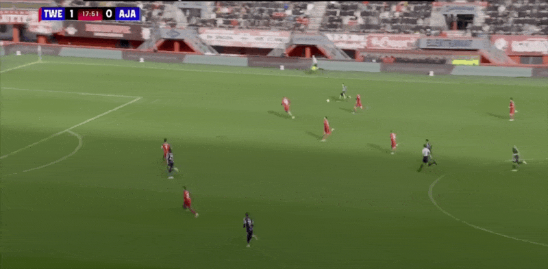 18' Verhorst quay người và rê bóng trong khu vực ba giây và ghi bàn thắng đầu tiên của trận đấu cho Ajax